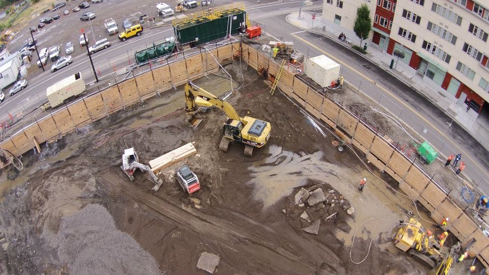 At Block 43, R&H Construction brought on the Konell team to perform earthwork and grading as well as installation of the wet utilities, dewatering system, and erosion control.