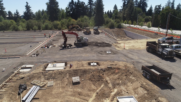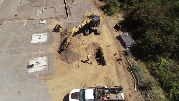 Teaming with PHI, Konell performed site clearing, tree removal, and excavation, including repurposing planter gardens as fill, to construct a new parking pad and lot. Work also included over 600 feet of deep sewer and storm installation, plus curbs and sidewalks.