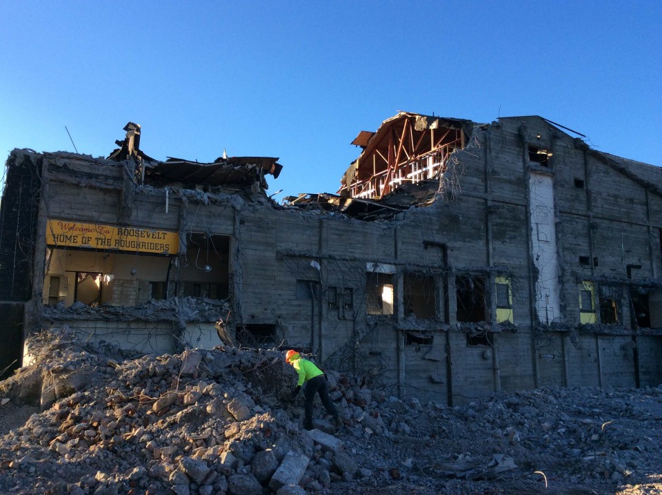 During the summer of 2015, our Demo Crew tore down Portland’s Roosevelt High School’s 1940’s gymnasium to make way for a new and safe high school gymnasium for the school’s current student body. Construction of the new facility is underway and is estimated to be ready for fall 2017 sporting events like basketball and volleyball, as well as physical education courses for the students.